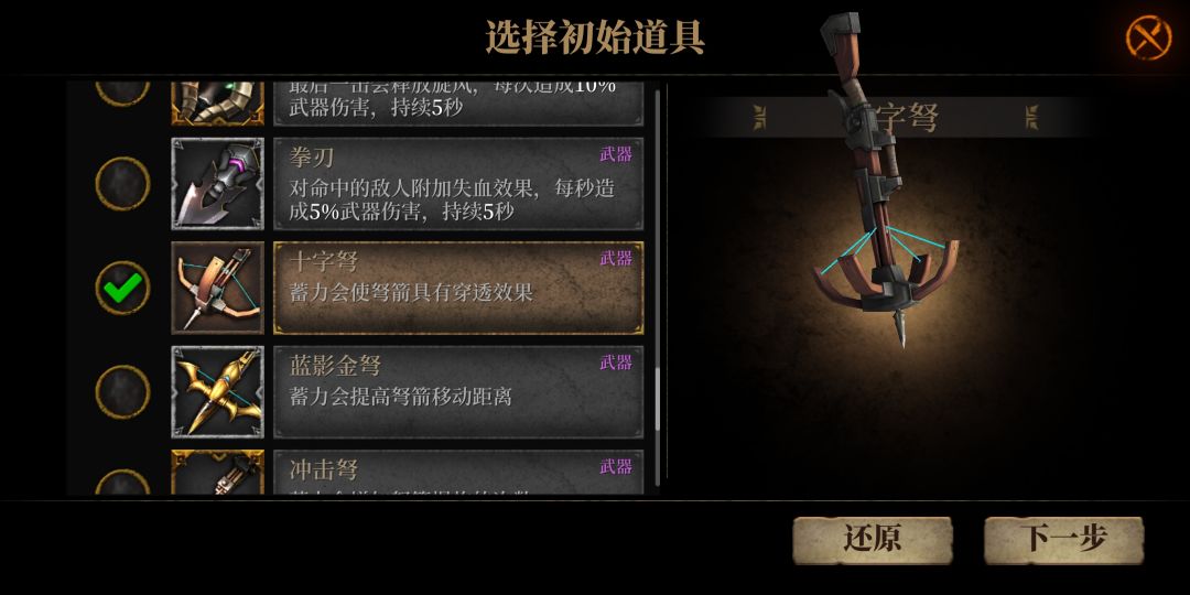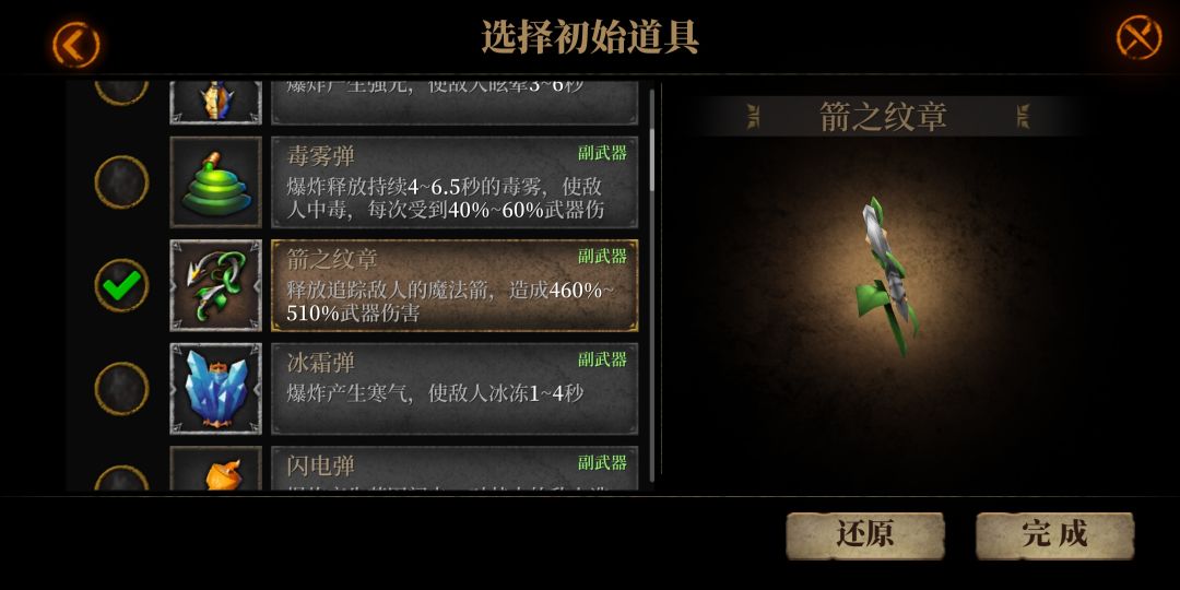 道具选择弩和箭之纹章有旋转箭塔当然还是首选箭塔毕竟增强之后直接从下水道变成了T0级别最变态的存在