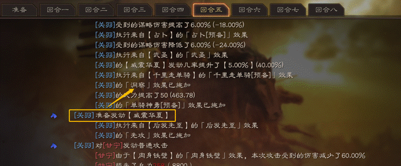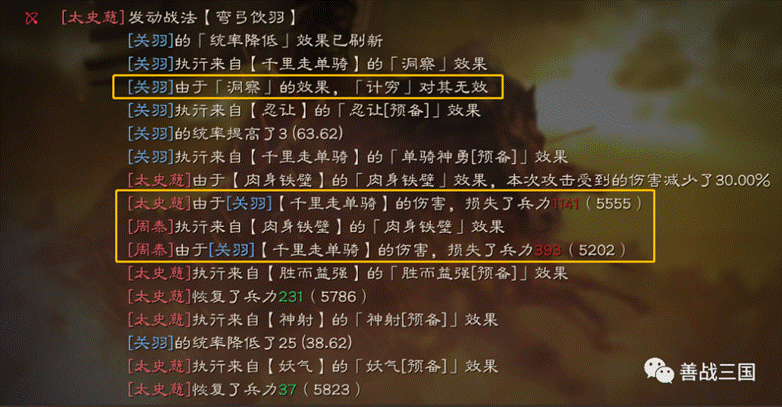 自带战法发动后获得2回合洞察,比如关羽带上千里走单骑只要发动威震华夏就不会被打断,想控制关羽就只能比他更快,但一旦发动就有2回合洞察,威震华夏连续发动时洞察还在,也就是一次千里走单骑的洞察相当于保护两次准备战法的发动。