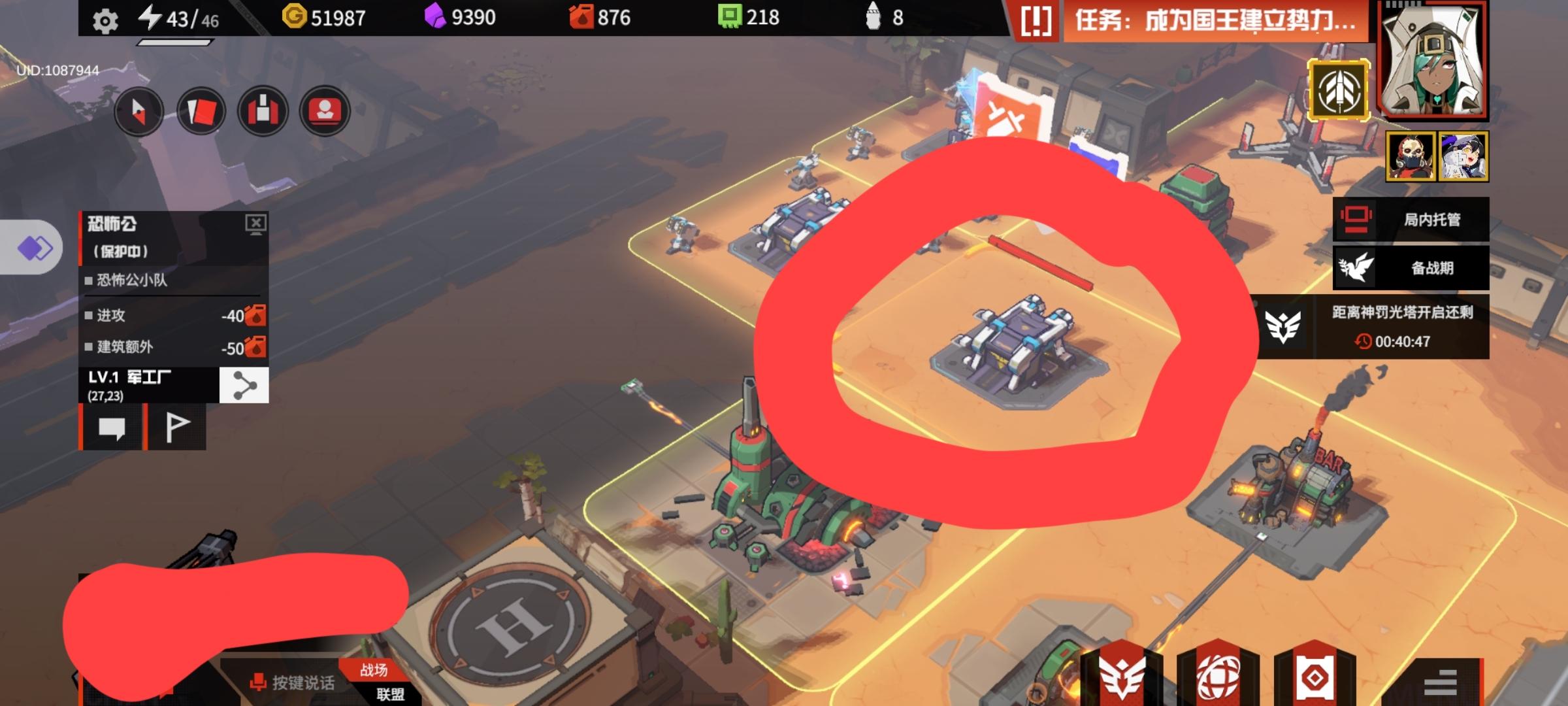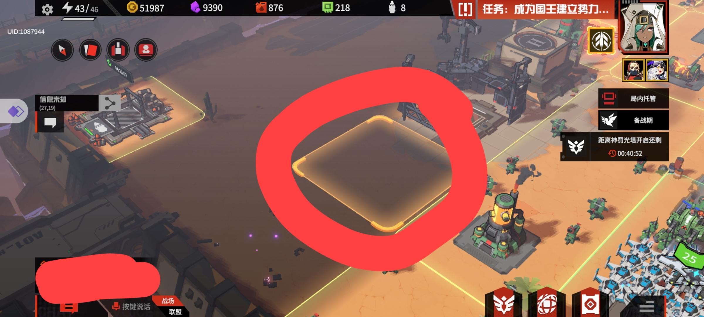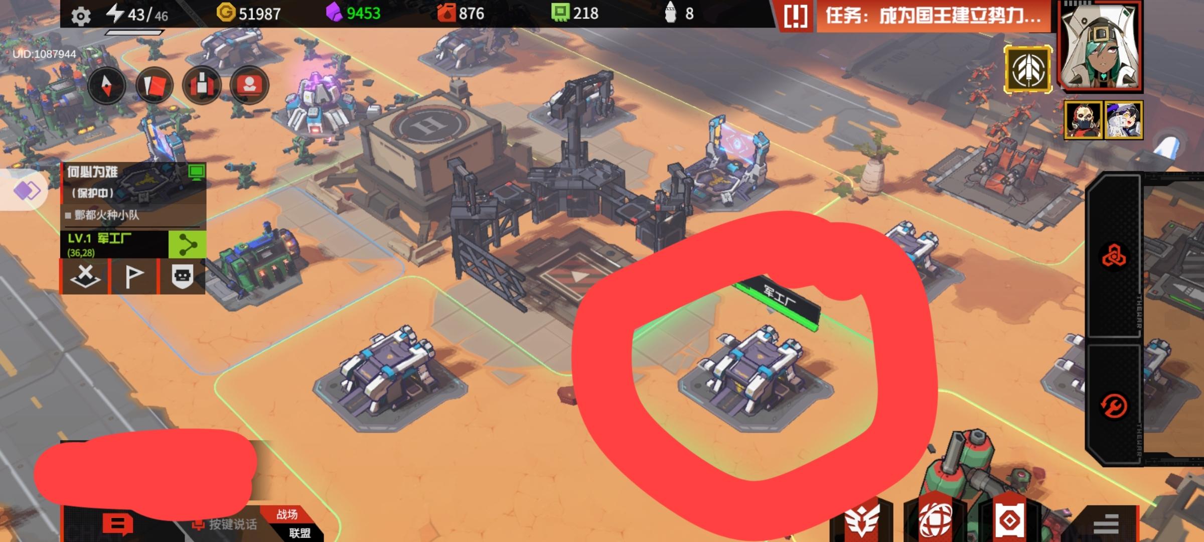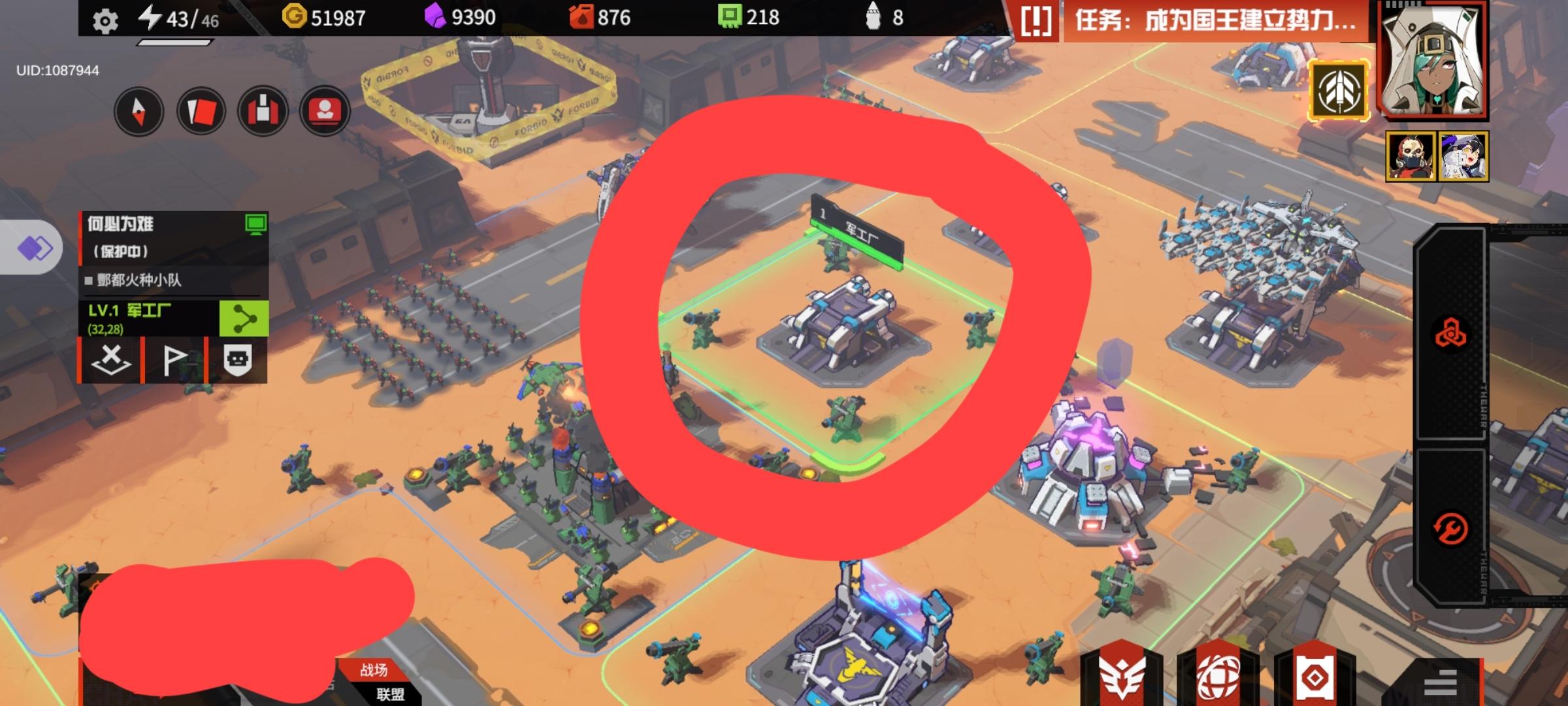 3.打光塔后最近路线去暗金矿然后打4个功能野区打完就可以出桥了,记得拉扯怪我一般先用载具攻击吸引火力在用后排在打之前可以点驻守这时候副官也会过来吸收很多火力