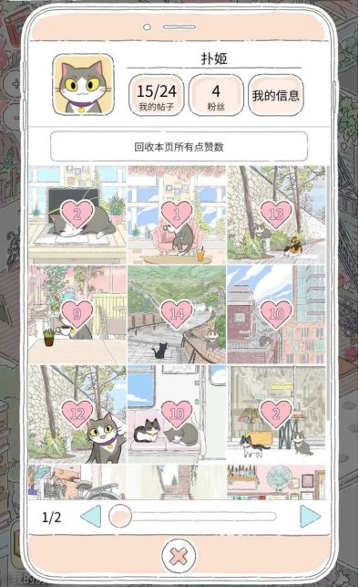 而一个点赞可以获得一个爱心,通过照片获得的爱心可以用作于猫猫进行旅游时所需的费用。