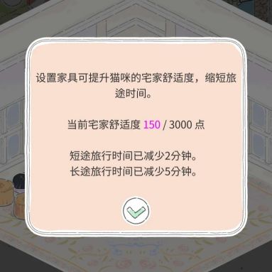 装饰房屋可以提升房屋的舒适度,舒适度越高,就能吸引越多的猫猫逗留在房屋内,还能减少每次“扑姬’猫猫去旅游所需的时间。