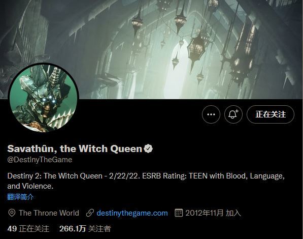 《命运2》官方社交账号被诡计女王萨瓦图恩“劫持”