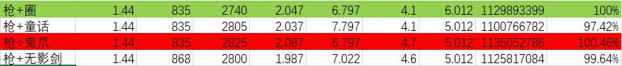 可以看到优化后的枪+圈和枪+鬼爪成功登顶成为海战新版本组队的最强搭配(如果水攻高一点枪+圈的收益更高),虽然鬼爪和圈相差不多,但现在圈都是洗暴击值的,而圈的暴击值和拳头相差了20,本来单暴击值就有点困难,现在再少20对萌新更不友好。对于老海战玩家,拳头也都是洗的暴击值,现在为了圈而去换水攻有点画蛇添足了