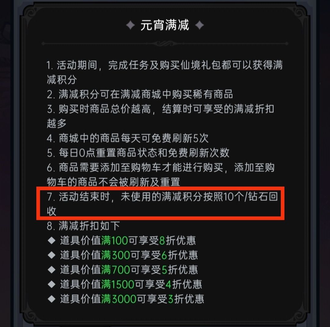 要知道“满减”系列是魔镜在元宵佳节推出的新活动,与改版后的“仙境迷踪”同时上线,两者间有着密切的联动,而购买“仙境礼包”,即可获得大量“满减”需要的活动积分。
