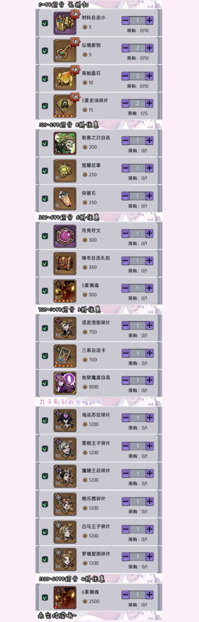 因此积分不足或没有刷到心仪商品的宝子们可将积分放心兑换为钻石,到其它商店与活动中购买需要的宝贝了呀。