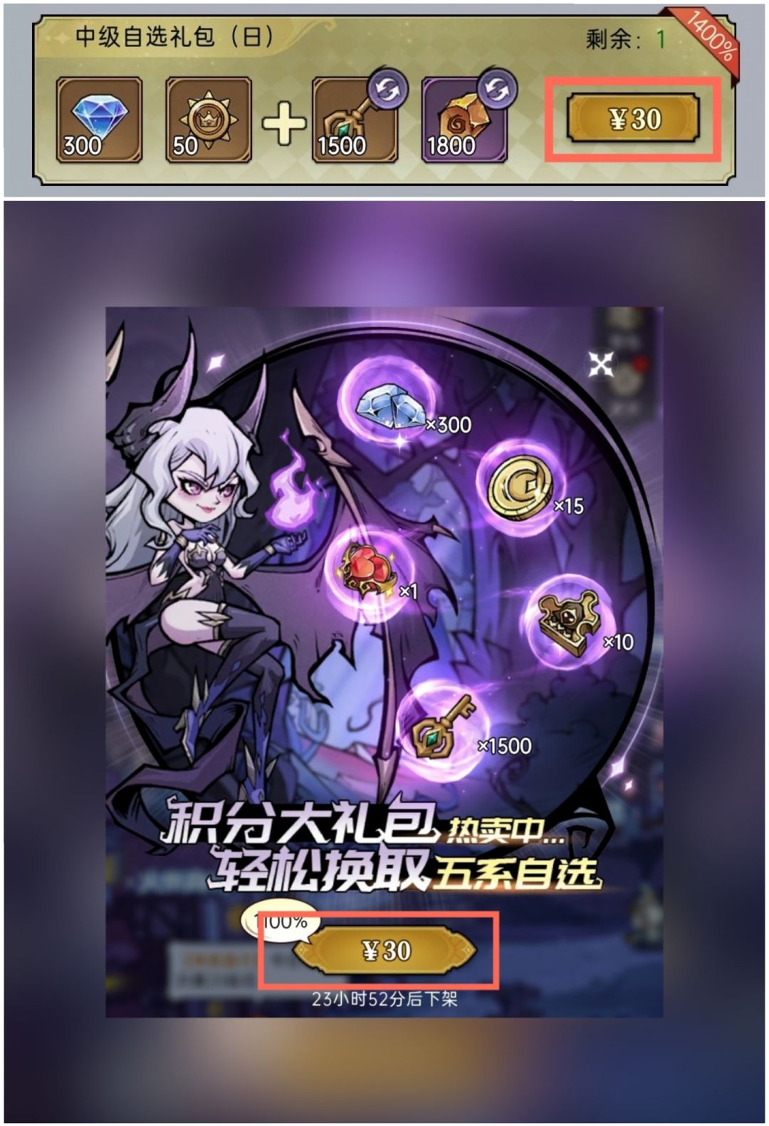 最后举个例子供大家参考,根据已知满减规则,拥有900积分即可享受购买价值3000积分的商品,假设一名小可爱单纯的想在活动期间以较高性价比获得900积分,那么她可以这样购买: