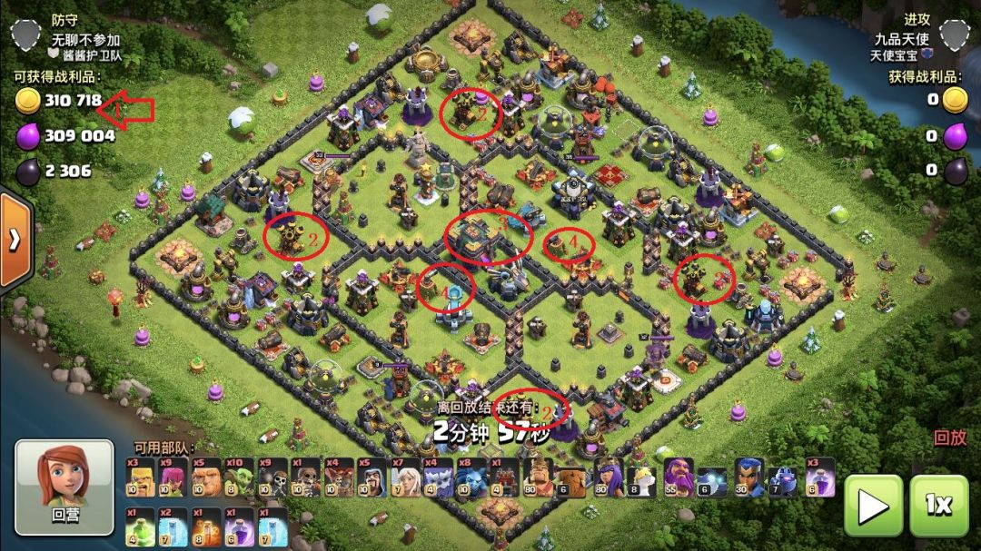 上面这个图,一个女王开局,后面看时间情况,用蛮王收尾,好处是下场又可以双王继续。看视频了