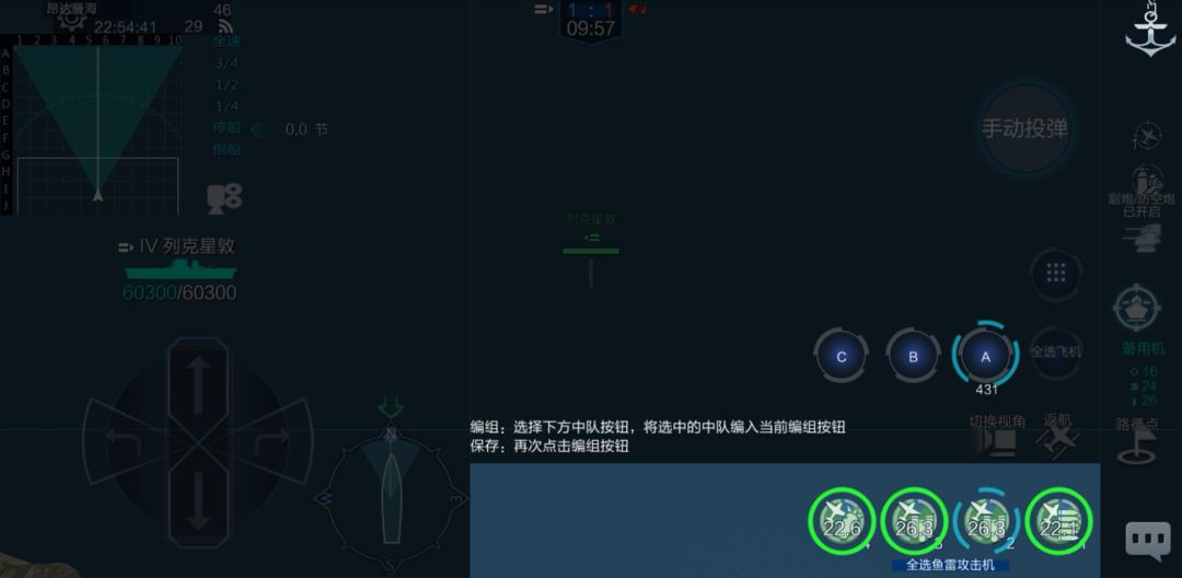 这两项是与cv相关的。前面的攻略中樱梦酱没有进行讲解,在此补充说明一下。“舰载机手动投弹模式”下方简单说明了勾选与不勾选的区别,大家先看一下,我们一会会进行详细讲解。在“航母自定义飞机编组”中若勾选了“A”、“B”、“C”,则操作界面中也会出现相应的“A”、“B”、“C”按钮,我们一会也会进行详细地说明_(:з」∠)_