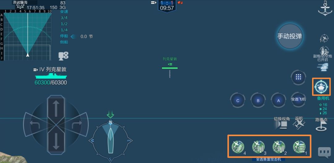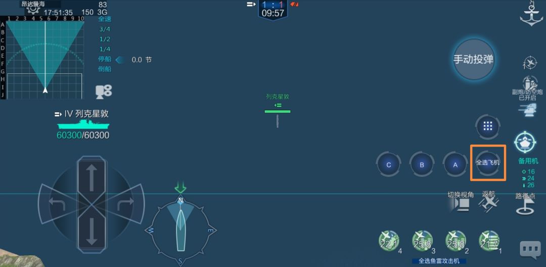 手动投弹。该指令对未投弹的舰攻和舰爆有效。在“手动投弹”区域拖动会出现投弹圈,继续拖动至合适位置,松手后,选定单位会前往投弹位置进行投弹。