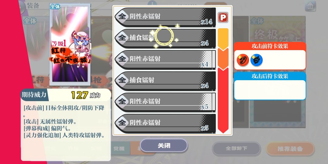 一般情况下输出用符卡最好保证1P3条/2P4条/3P5条弹幕,可以根据这个标准衡量角色的灵力消耗带需要的灵力绘卷
