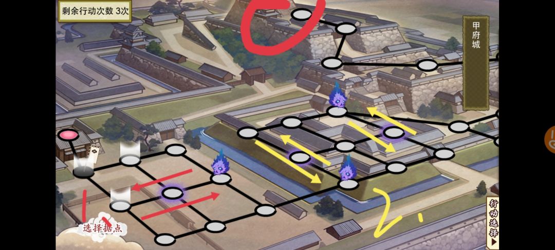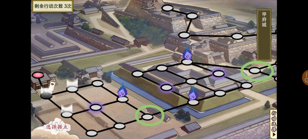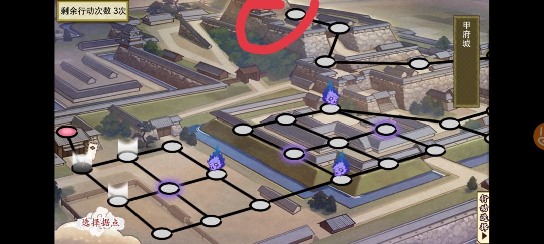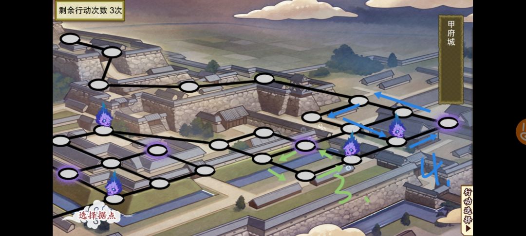 除此之外上图没标到的点都是鬼头不会行动的区域,并且中间还可以暂时返回本丸,返回点如下