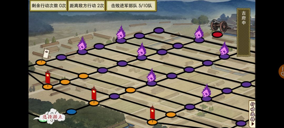 鬼头也会在这时统一向前走一步,将橙点踩成紫点(反之,我方也一样,前进踩到紫点后触发战斗,赢后将紫点转为橙点)