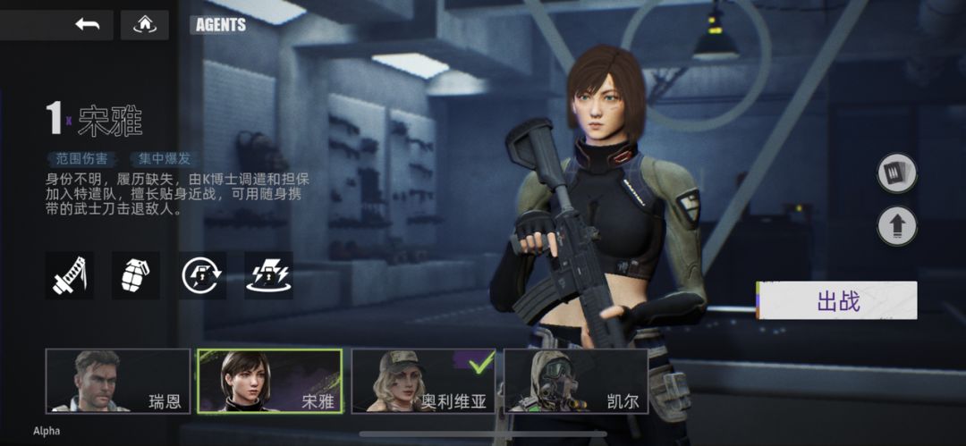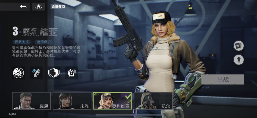 奥利维亚在战斗技巧和团队配合等各个领域都远超一般特工。其配备的”电击陷阱桩“可以形成电流,可以有效的协助小队构筑防线。