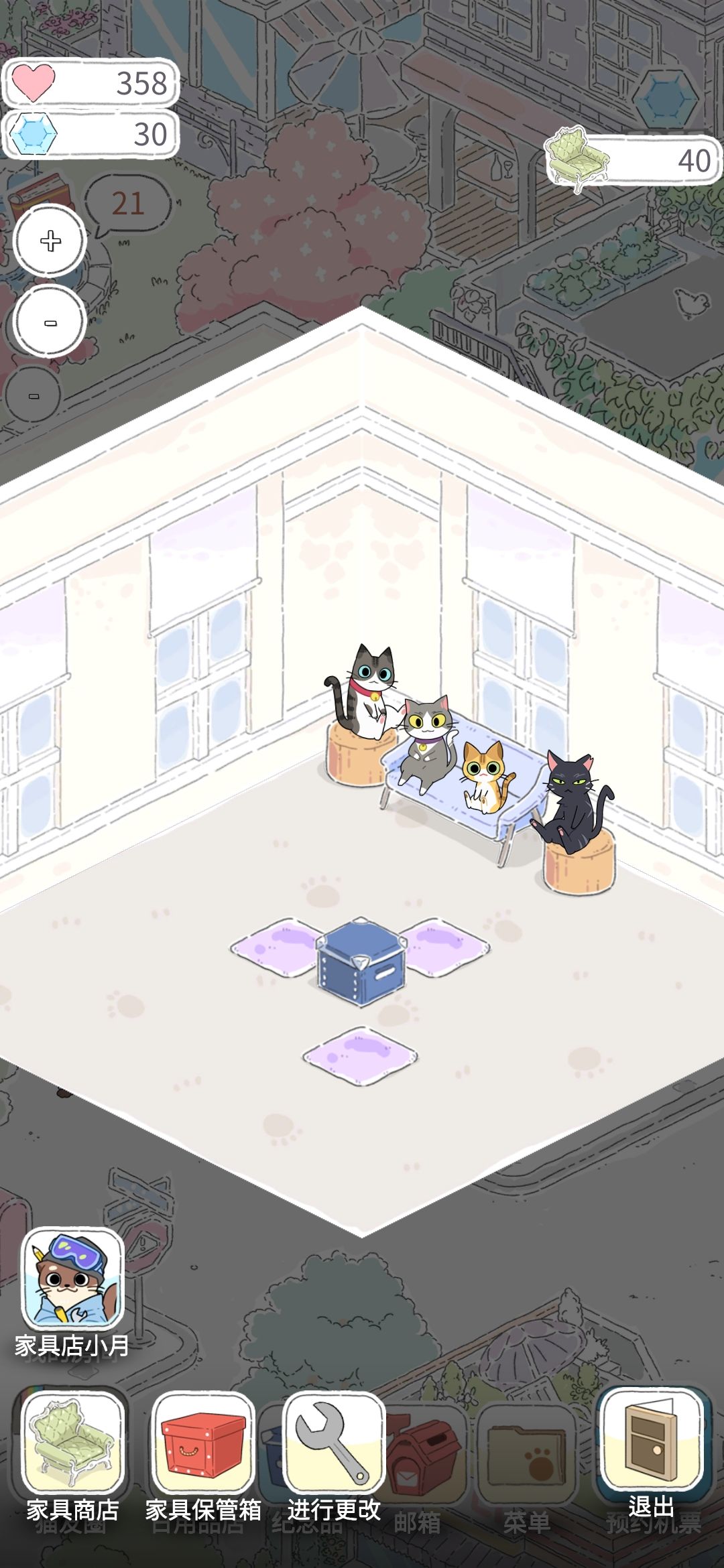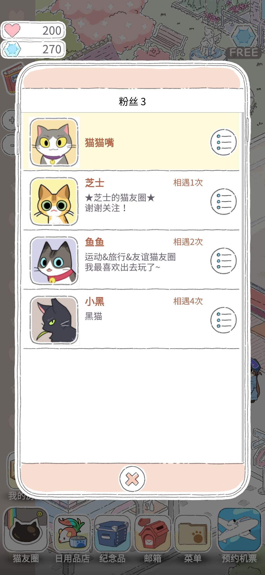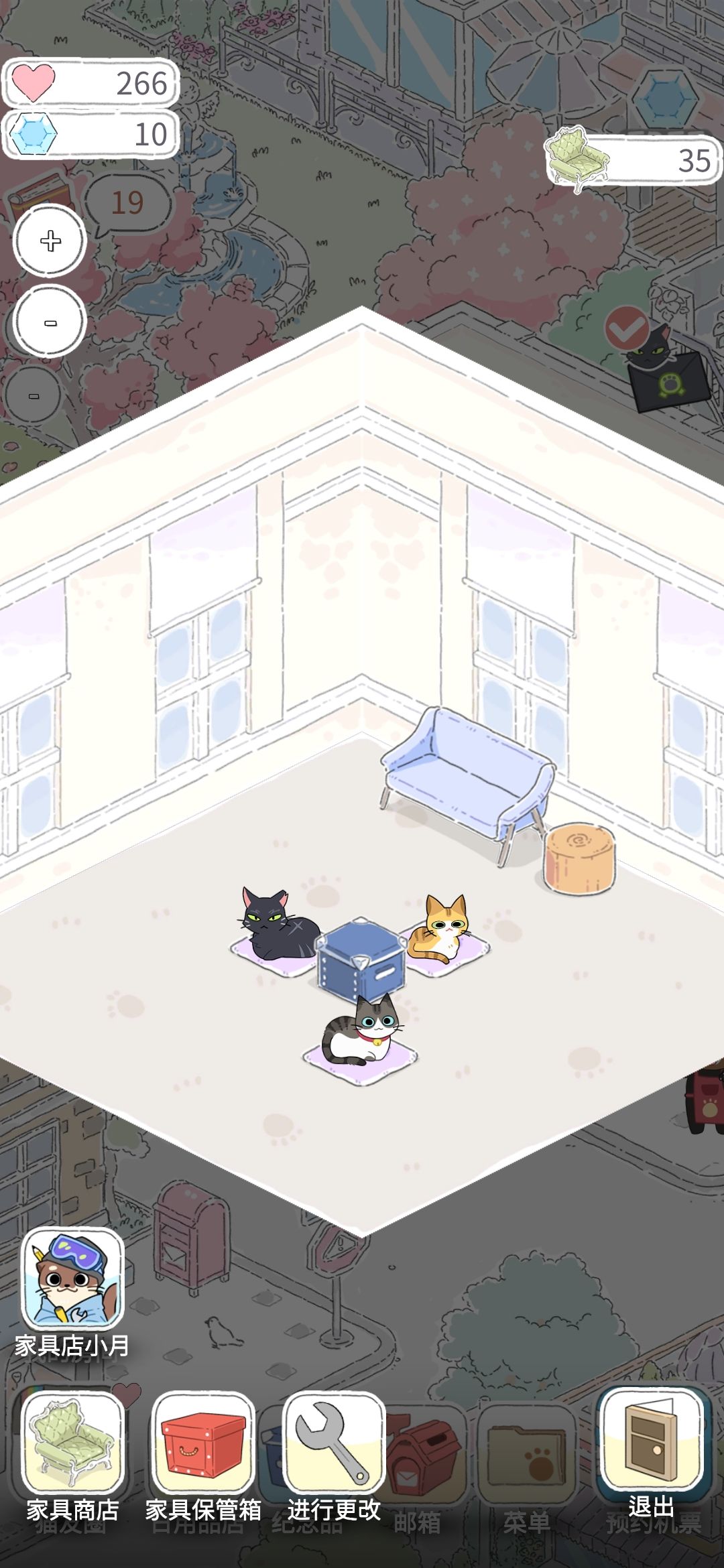 2、可以在猫猫来家里的时候不点右下↘“退出”,绑架猫猫!一直薅稳定爱心~