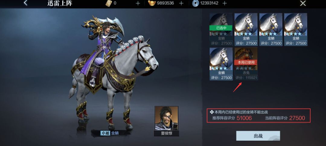 在迅雷玩法中,本周已经使用过的坐骑是无法再次使用的,只能等到下周才能够上场,因此大家需要合理分配马匹来闯关。