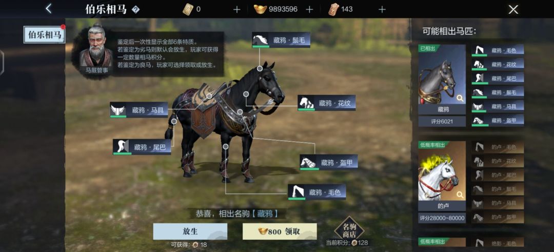 获取坐骑的主要途径是伯乐相马与坐骑繁育,大家每天可以在伯乐相马中,免费鉴定五次,鉴定出名驹后,通过消耗元宝或点券即可领取。而放生鉴定出来的马匹,则可以获得相马积分,累积一定积分也可以在商店兑换各种品质的马匹。