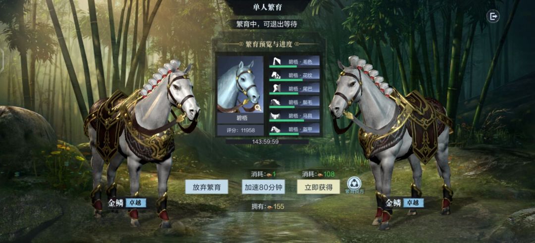 坐骑繁育则是需要两只坐骑,通过消耗一定数量的繁育良方来获得更高品质的坐骑,可以自己单人繁育,也可以邀请好友进行。