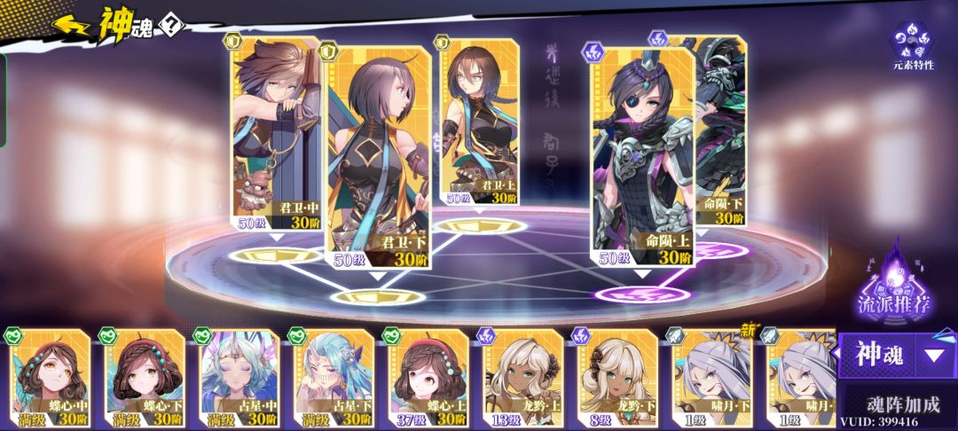神魂3君卫2命运(可以备选神威),大部分神魂中都是加生命值的,需要生命值的副神魂可选一张神魂中。