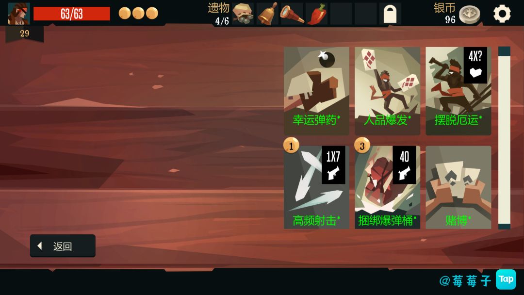 1. 子弹袋+铃铛+望远镜+辣椒;赌博/洗牌