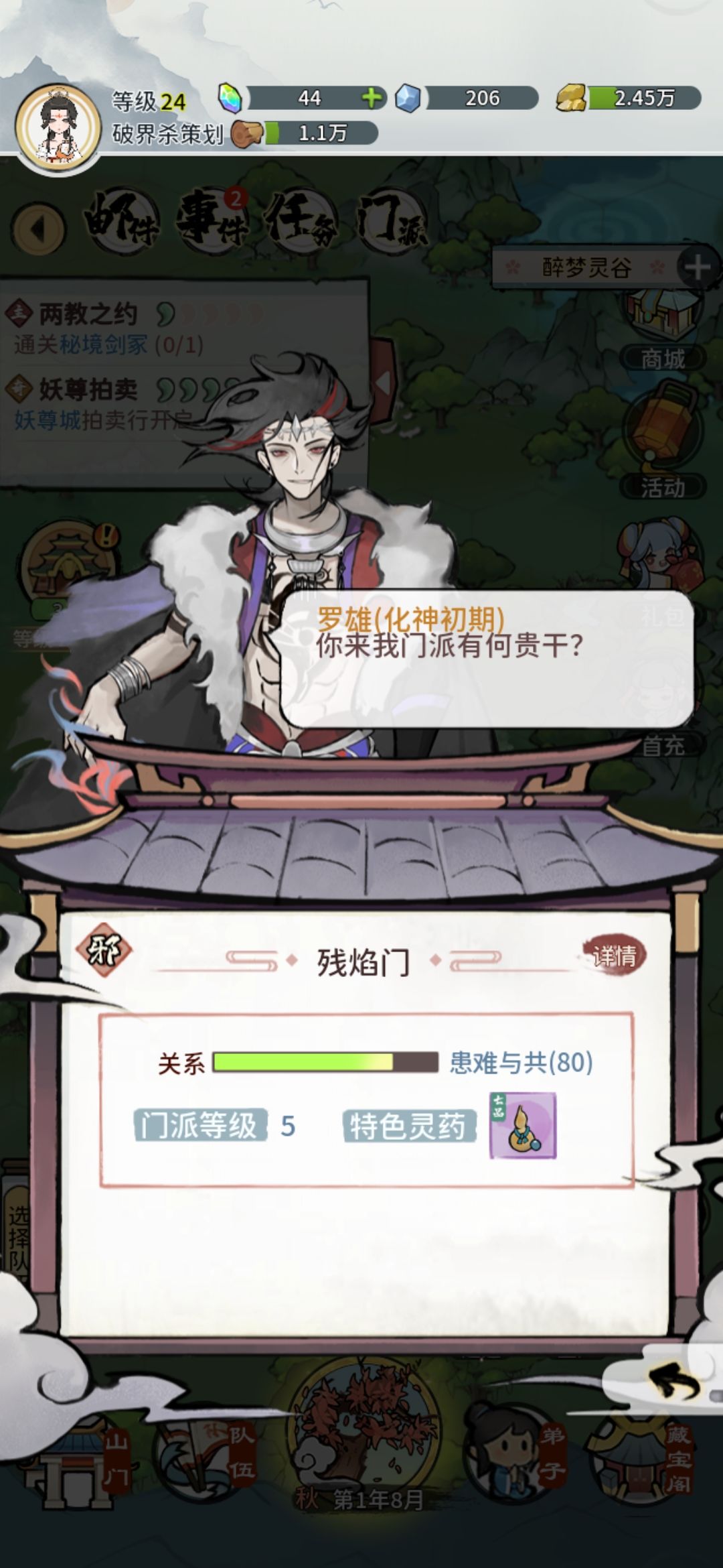 (因为主角要第一天元婴)金丹以前的丹药不要吃,给主角尽量金丹期的吃紫金品质丹,不行再蓝药,白绿的可以给别的工具人用。 月份起码金丹前都不用刷新,后面遇到卡关了没东西打了,就去地图上两个城里面接任务,也会给少许经验和经验丹,