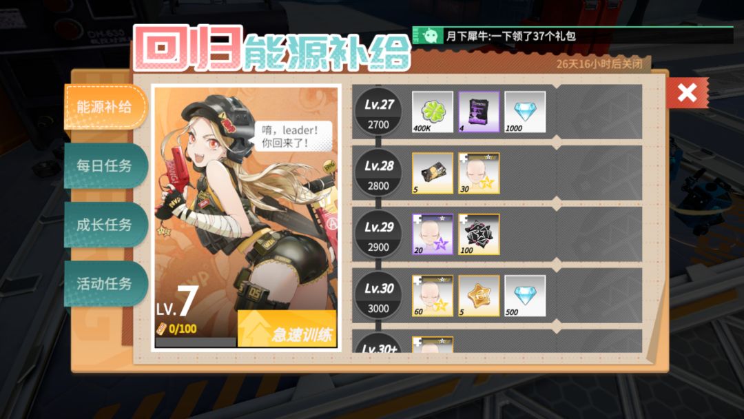 ……仔细算算有点过于好。我不知道回归奖励的量和练度有没有关系。