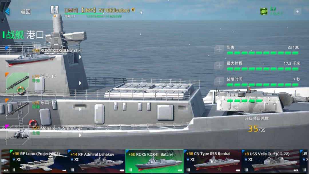 导弹: 东风(有锆石的用锆石) 首选 原因:近期加强的东风导弹简直爽到爆,速度快,伤害还可以,装填速度还可以再,备弹量可观。 X51的伤害高,不会被热诱,但是装填速度太低