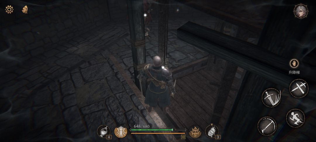 38.把电梯放下去,人从旁边下梯子,面前有拾取物