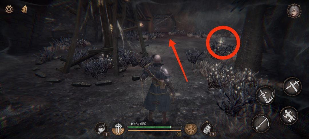 7.回到分叉路走右侧,旁边拾取物,走红标跳劈