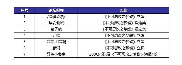 由官方评选1名投稿内容最好的小伙伴送出200Q币和《不可思议之梦蝶》海报1份