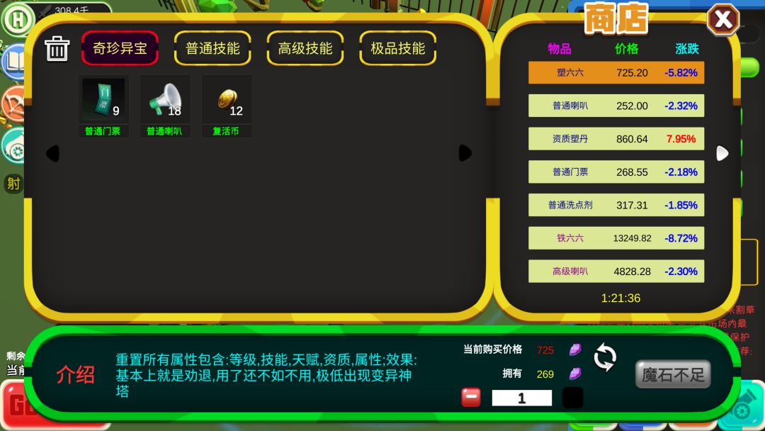 然后我又去买了三瓶塑66,结果发现魔石少了,但是塑66并没有出现在我的背包了