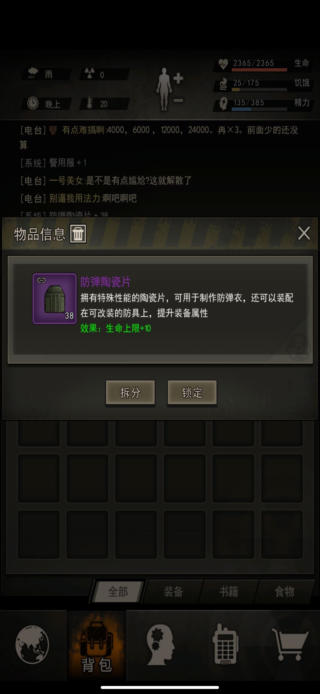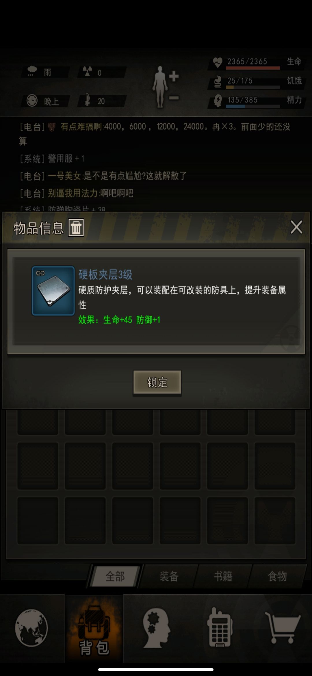 接着咱们防具配件就要搞一搞了,硬板2级,弹板1级,抗辐射先不急,用活动兑换的陶瓷作为第三个配件格子的配件即可
