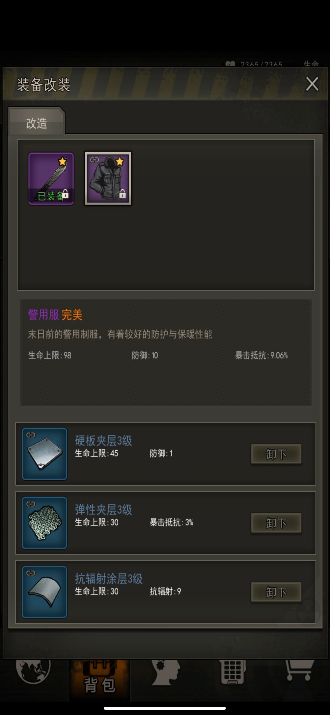 如果考虑想要点完美,那有两件装备的完美优先点(但在这个阶段还碰不到)警服和警裤好修且好用,建议优先考虑。