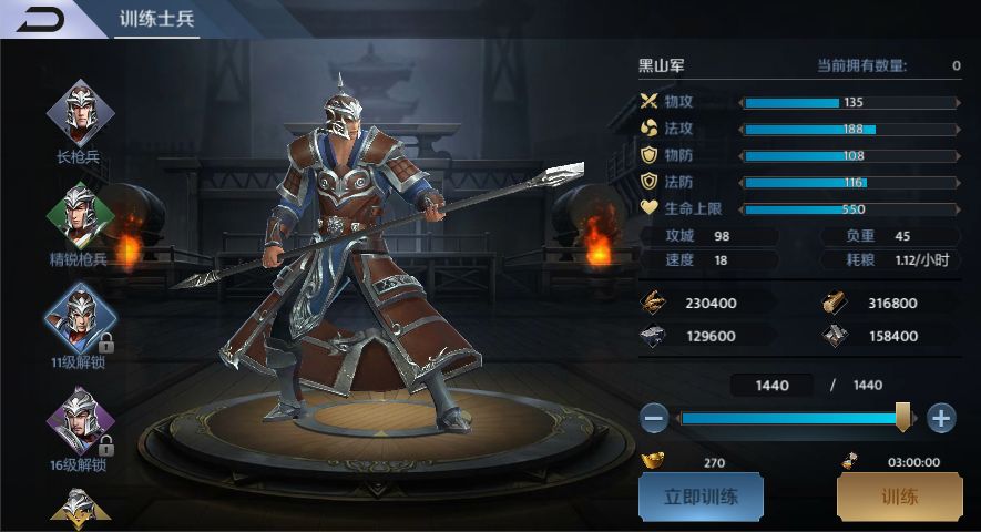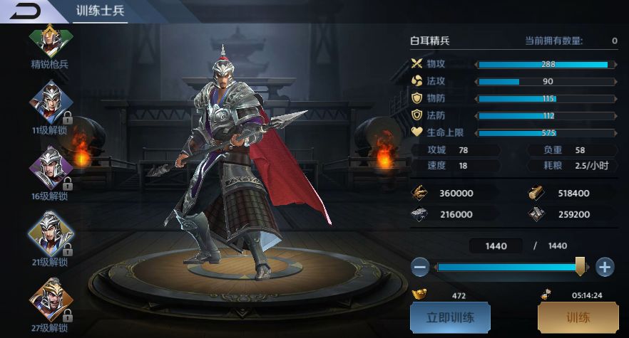 枪兵分为长枪兵、精锐枪兵、黑山军、青州军、白耳精兵和大戟士。主城内枪兵营等级达到5级可解锁精锐枪兵、11级解锁黑山军、16级解锁青州军、21级解锁白耳精兵,27级解锁大戟士;长枪兵为枪兵营的初始兵种,1级即可训练。