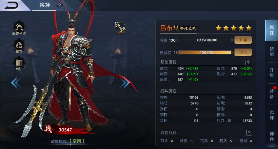 长枪兵攻击高,爆发强,适合短程战斗;可佩戴的武将如——吕布!