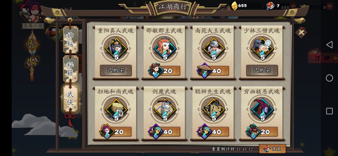 商行点开再关掉再点开就可以刷新所需武魂碎片,抽了好多重复橙,都20换5了,血亏,现在门派出来了当然捐橙碎片最划算了。