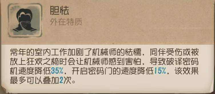 ★实战注意:由于【胆怯】的存在,机械师要时刻注意场上队友的状态,这使得机械玩偶的存在变得尤为重要,因为监管者很可能利用这一点频繁地攻击其他求生者队友,使场上队友受伤,导致机械师破译密码机与密码门的速度大为降低。
