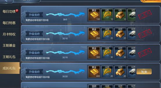 接下来,升级领地官府等级 也会有相应的成长大礼包哦,黄金送不停。