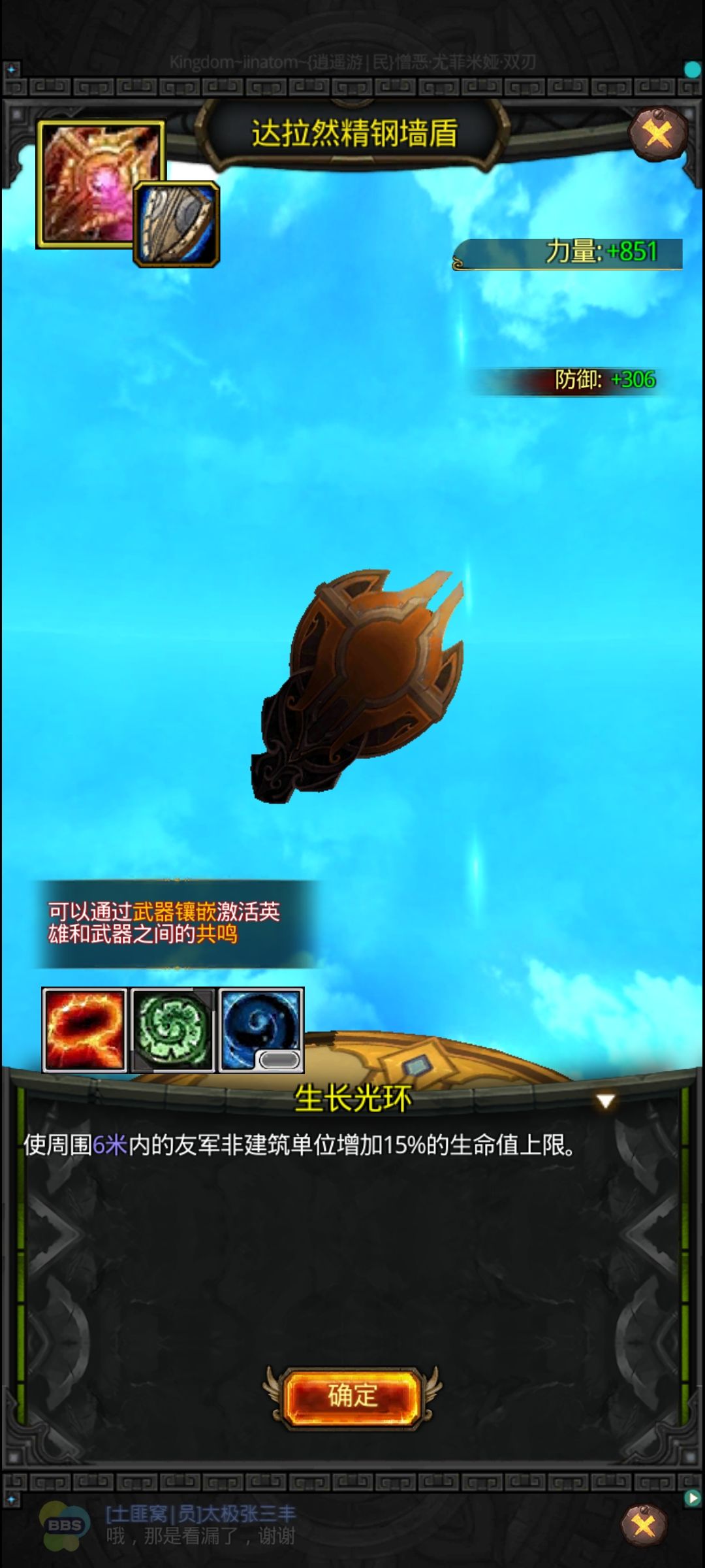 副手武器:输出向选择,海之歌、野蛮之锤,更多选择是盾牌,力量型盾牌,活着就是输出