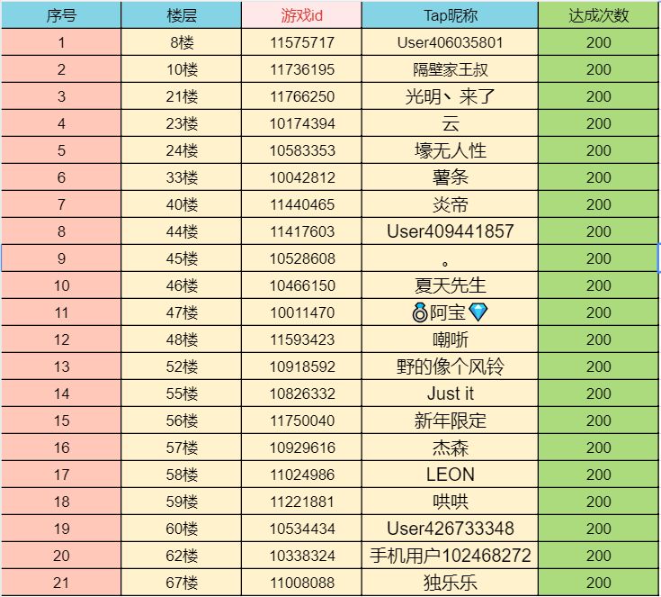 ①以下是本次符合200次阵营抽的冒险家名单(不代表实际中奖名单)