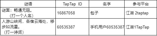 恭喜以上两位大侠获得我们的下一站江湖国风玩家嘉年华入场券*1![[嗒啦啦2_优秀]](https://img.tapimg.com/market/images/bbb6da13ee1c31ee1405e261f12f366e.gif)