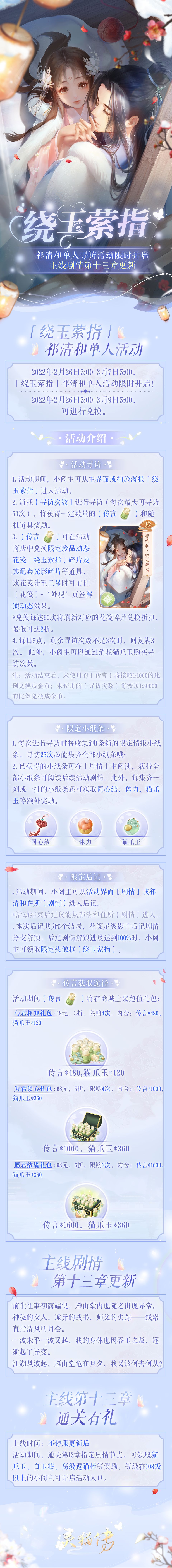 ✨2月26日5:00-3月7日5:00,「绕玉萦指」祁清和单人活动限时开启,2月26日5:00-3月9日5:00,可进行兑换。