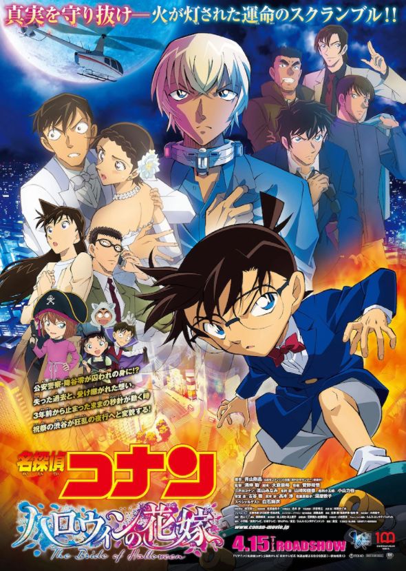 •《名侦探柯南:万圣节新娘》本次的故事舞台位于因为万圣节前夜而变得热闹的东京涉谷,警视厅搜查一课的佐藤美和子警官正身着晚礼服,参加一场结婚盛宴,突然有暴徒闯入,为保护佐藤高木警官负伤,与此同时,一名极度危险连续炸弹狂魔犯人越狱成功,降谷零陷入了脖颈炸弹危机,究竟危机该如何解决?