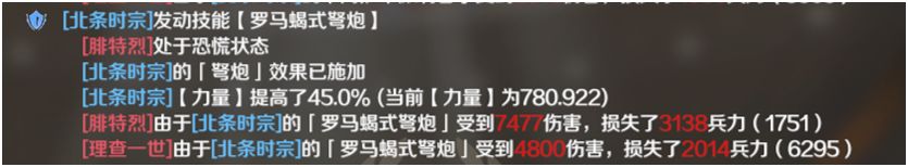 触发弩炮后力量变为780.92,造成7477+4800=12277的伤害,最终敌方损失为5152。