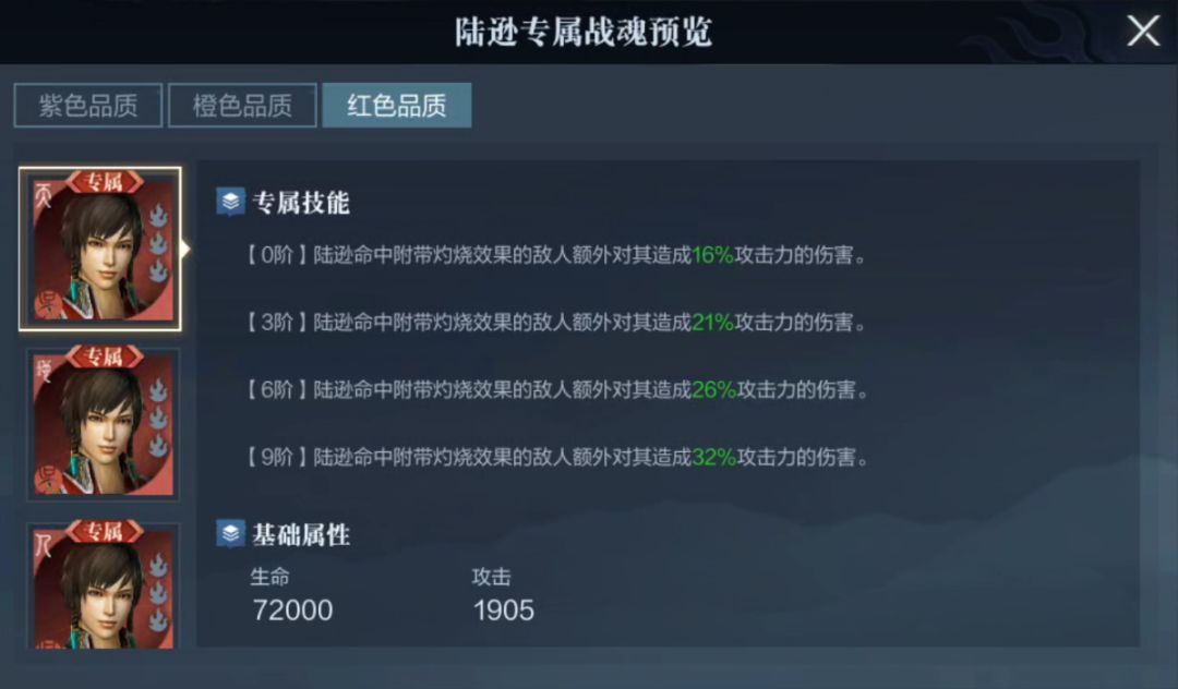 陆逊战斗中对附带灼烧效果的敌人伤害提升。
