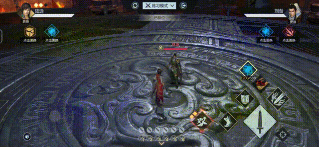 陆逊一剑封喉擒住敌人,并借力旋转后用力挥剑横斩,对敌人造成伤害。