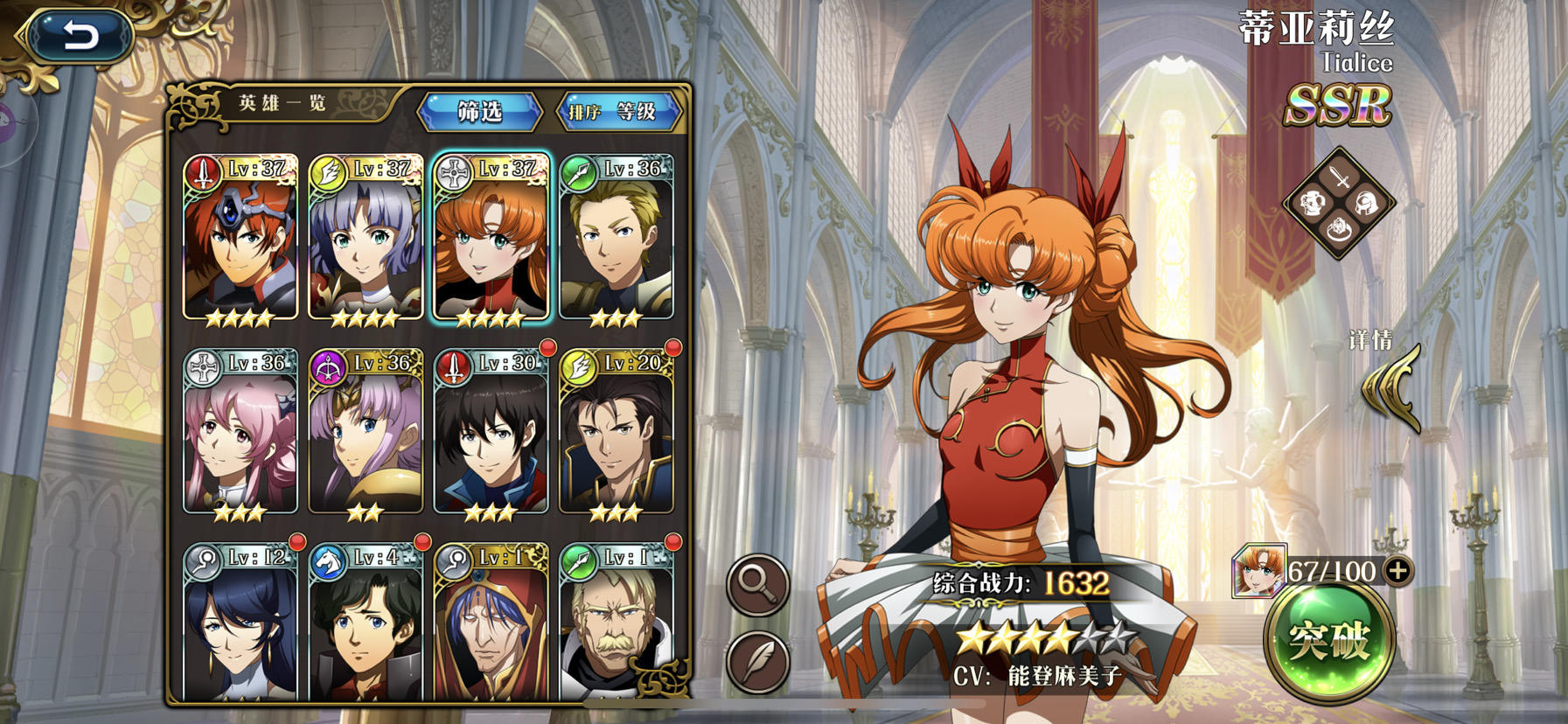 玩的是光辉,因为看最近都没合适的新池子,就全部投新晋池了,许愿的25和奶骑当初110抽出了,没歪,本来想摸个雷丁或者公主阵营的SSR,没想到又出了1个25和2个奶骑,一共5个SSR一个不歪的,有点搞,这算欧还是非?黄毛和粉毛我都不知道要不要继续投资源养了,现在36级……
