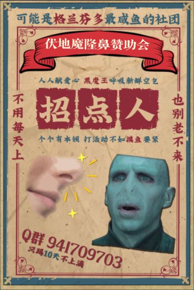 1区养生老社团,《伏地魔隆鼻赞助会》,想找一些有趣的咸鱼玩家