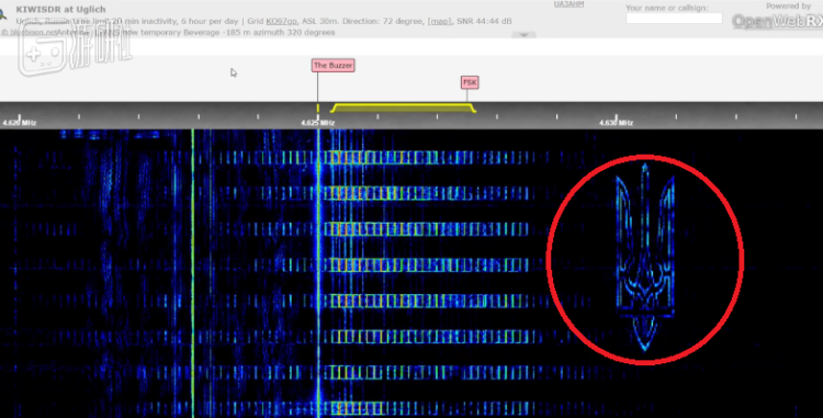 据俄媒TJournal报道,2017年平安夜,一批干扰者在“UVB-76”的波段播放俄语说唱,还高喊道“荣耀归于乌克兰”。2021年8月13日,“UVB-76”受到音乐与频谱图干扰,干扰者放出的多张频谱图中,就有一幅乌克兰的国徽。