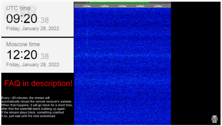 如今“UVB-76”的大部分听众,已经不再依赖成本高昂的物理设备,更倾向于使用互联网的实时转播网站。这些网站连接着世界各地的大型无线电接收器,会把无线电波实时转化为可视化的频谱瀑布图。