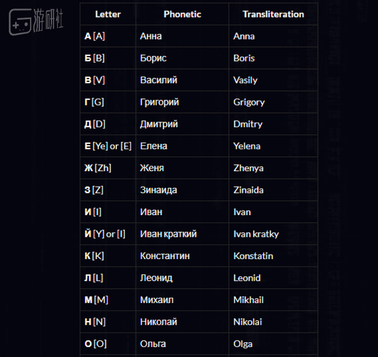 为了避免播报单一字母时因语音模糊、噪音太大造成混淆的情况,无线电通联习惯使用特定的词语指代字母,在英文里是一些单词,放到俄文则是人名。因此,那句广播里的六个俄文人名,是在重复前文的“BROMAL”。